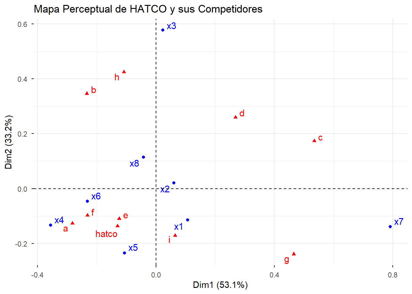 labs(title = "Mapa Perceptual de HATCO y sus Competidores")