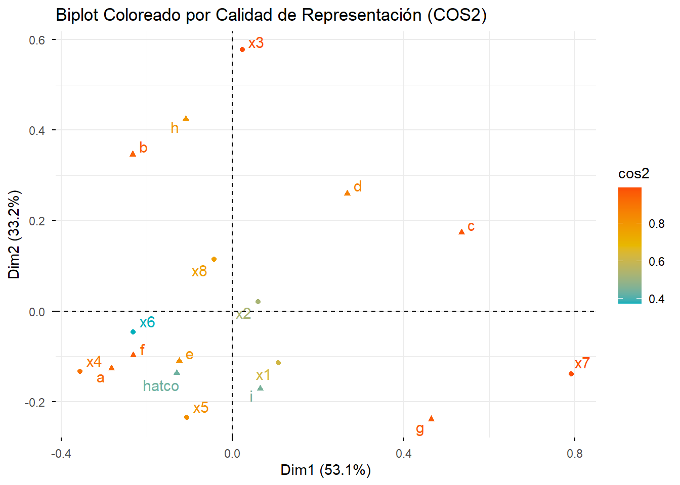 labs(title = "Biplot Coloreado por Calidad de Representación (COS2)")