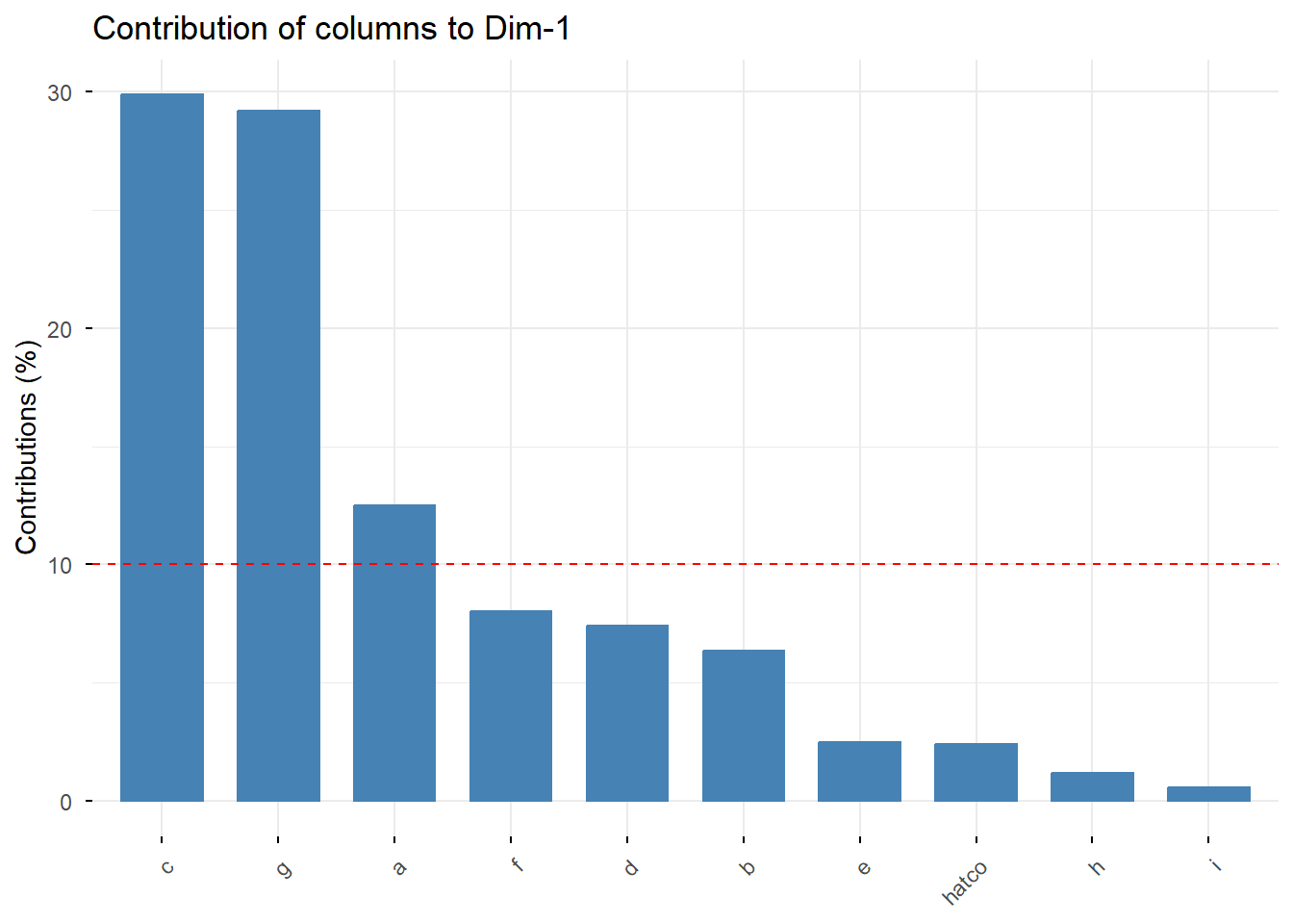 fviz_contrib(res_ca, choice = "col", axes = 1)