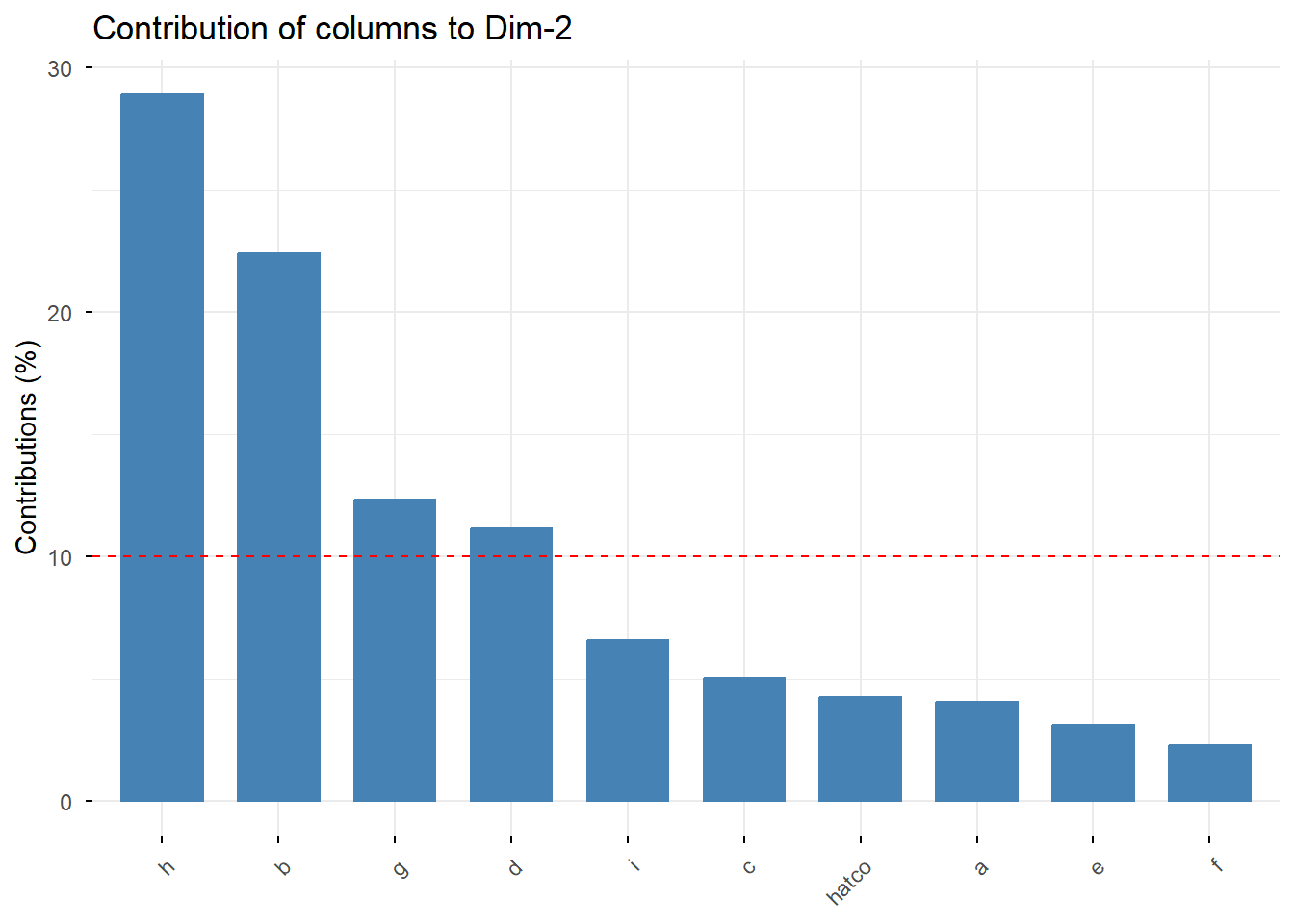 fviz_contrib(res_ca, choice = "col", axes = 2)