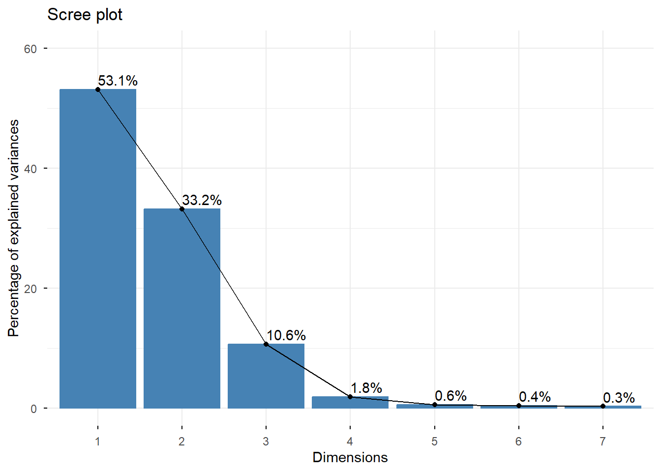 % of var. 53.129 33.188 10.614 1.845 0.559 0.400 0.264
