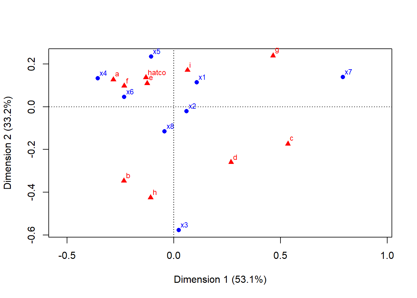 res_ca_sup <- CA(tabla_hatco_sup, col.sup = 11, graph = FALSE)